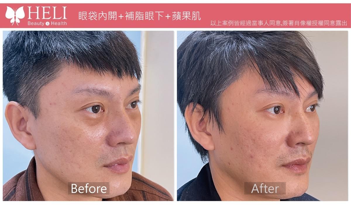 A:年輕狀況沒那麼嚴重,內開 修復幾天即可達到效果!老年人 整個身體機制代謝全部都不好,就會導致要外開眼袋有傷口,甚至皮膚已經鬆弛還要拉皮,才能改善,甚至修復期 一定沒有年輕時來的好哦!